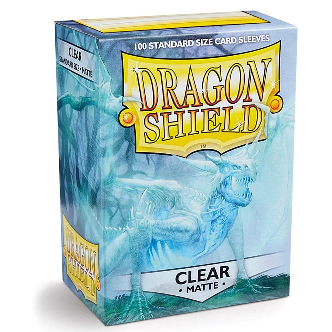 Clear front & Clear back. Cool and futuristic. Matte sleeves are our popular line of textured Dragon Shield with superior handling. A perfect mix of durability and shuffle-ability. The sturdy cardboard box fits 75+ single sleeved cards or 65+ double sleeved cards. Every box has a label at the top of the box for personalization.